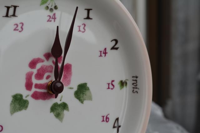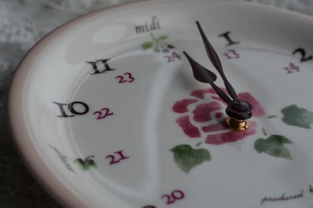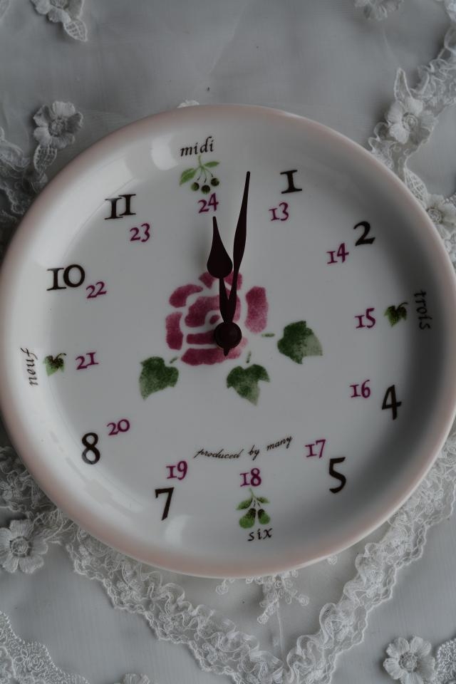 マニーローズのラウンドプレートクロック(ローズ)です。 国産陶器製の時計です。